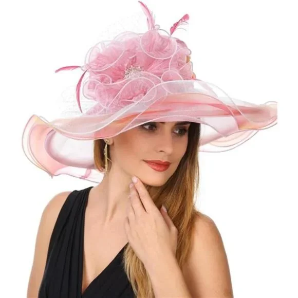 Women's Organza Church Kentucky Hat 4571-pink White