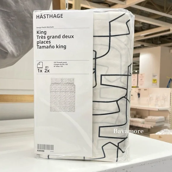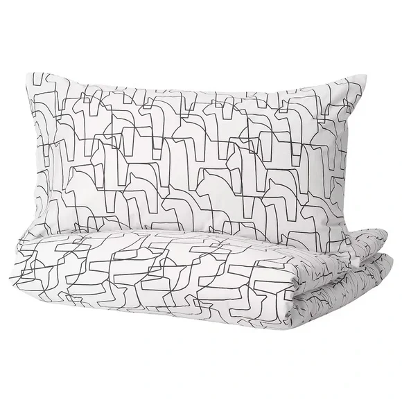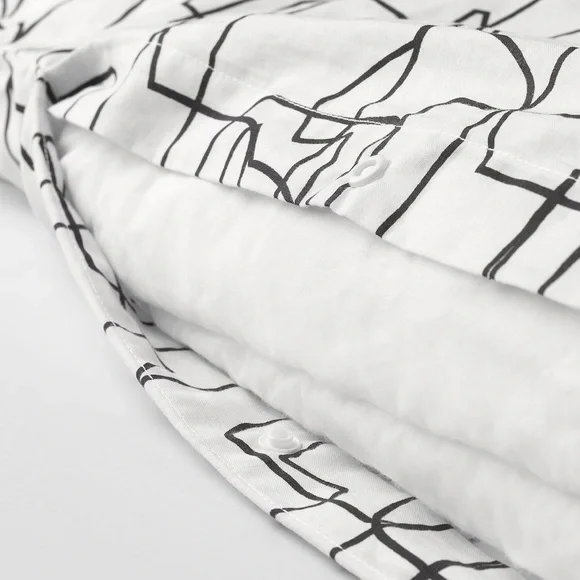 Made in 100% cotton - a natural and durable material.Pure cotton that feels soft and nice against your skin.Concealed press studs keep the duvet in place.152 thread count.Thread count indicates the number of threads per square inch of fabric. The higher the thread count the more densely woven the fabric.Pillowcase with envelope closing.Material100 % cottonProduct SizeThread count: 152 /inch²Pillowcase quantity: 2 packDuvet cover length: 102 "Duvet cover width: 86 "Pillowcase length: 20 "Pillowcase width: 36 "