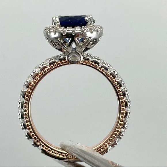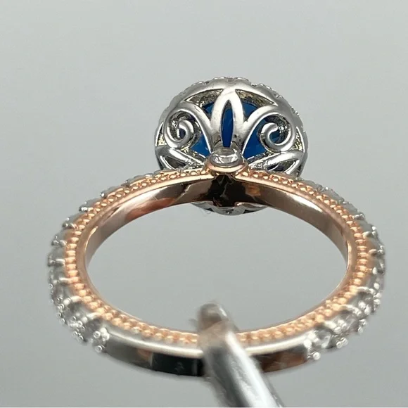 Beautiful Statement Round Cut Halo Blue Sapphire Diamond CZ Silver Plated With Rose Gold Tone Details Ring All Stones are Cubic ZirconiasOther listings: cuban paper clip chain link hip hop dainty chunky solitaire carat radiant present zirconia square sterling tanzanite 16” vintage eternity morganite encrusted ruby pave couple’s jewelry setting rare diamonds sapphire promise jewelers green heirloom fairy purple past platinum ring present rainbow nile micro future gem stones baguette delicate heavy shell half bridal baby rhodium set band link 18k australian engagement anklet box zales long emerald cow statement 750 peridot everrealli platinum 925 silver teal 3 brilliant heart sapphire 10k midi stackable 18” flower multi daisy butterfly wrap rose double swirl side jewel moon star love pinky 19” bracelet ear anniversary pinky wide yellow wedding citrine natural tall bridal pearl necklace 20” twisted stone rope sun kay lightweight cream knuckle thin 6 wide paperclip lariat turtle chakra oval amethyst cz 14kt pave watch cross gift low two fancy future huggie stone bangle weight tone white delicate antique clarity bling tri crystal