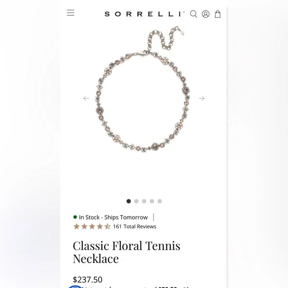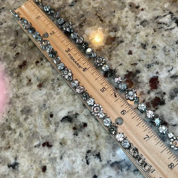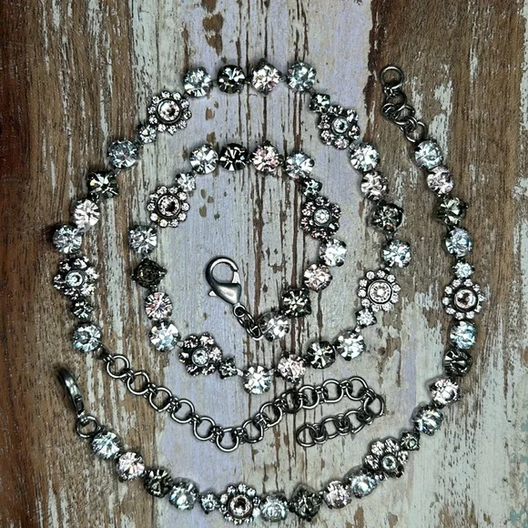2-Piece Set: SORRELLI Classic Floral Tennis Necklace & Matching BraceletGenuine Swarovski Crystals in Clear, Blush Pink/Champagne & Smokey GrayAntique silver finishSignedLobster claw closuresBridal / Wedding / Beachy / Neutral / Goes w Everything / SparkleNECKLACERetails @ $237.50Weight 24 gramsLength approx 17.5” incl. 3.75" extenderBRACELETRetails @ $165.00Weight 12 gramsLength 7.5" incl. 3/4" extenderExcellent preowned condition w all elements intact. Branded Sorrelli jewelry pouch included. All vintage jewelry is cleaned & polished. SAME DAY SHIPPING GUARANTEED! (when purchased by 10am EST)Sorrelli is a family-owned jewelry design company founded in 1983 and based in Kutztown, PA. Sorrelli jewelry is handcrafted from genuine semi-precious stones & high-quality Austrian crystals. Sorrelli jewelry has a lifetime guarantee, yes, even when purchased pre-owned! They will repair any Sorrelli piece free of charge. Trusted Seller with over 2,380 ⭐️F⭐️I⭐️V⭐️E⭐️ STAR ratings!